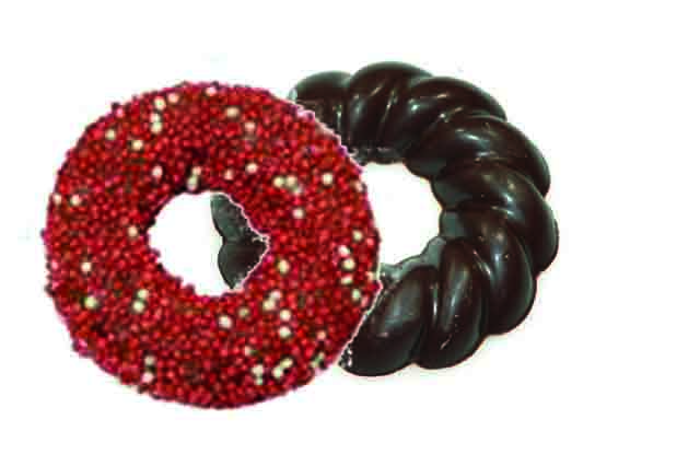 Kransjes van massieve pure chocolade met rood musket