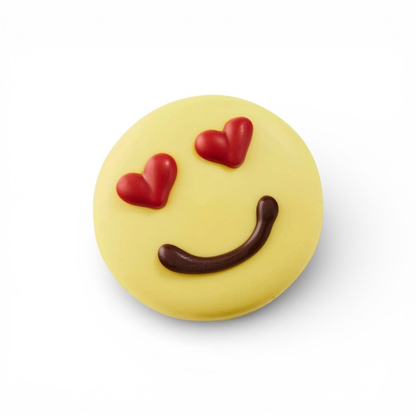 Verliefd lachende emoji van gele chocola (gekleurde witte chocola)